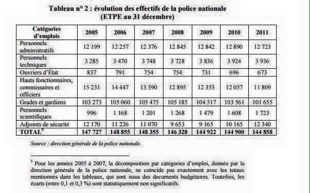 Bien et maintenant, depuis 2012 ? dDpuis que le contexte fait que... ça craint grave, que s’est-il passé ? Qu’est donc devenue la promesse de celui qui alors n’était que candidat à la présidentielle, promesse de créer d’urgence 5 000 postes dans la police ? Rien, nada, queue-de-chie ! Bien au contraire ! De 2012 au 31 décembre 2014, les effectifs de la police ont diminué passant de 143 997 à 143 050, ceux de la gendarmerie de 96 213 à 95 195.
