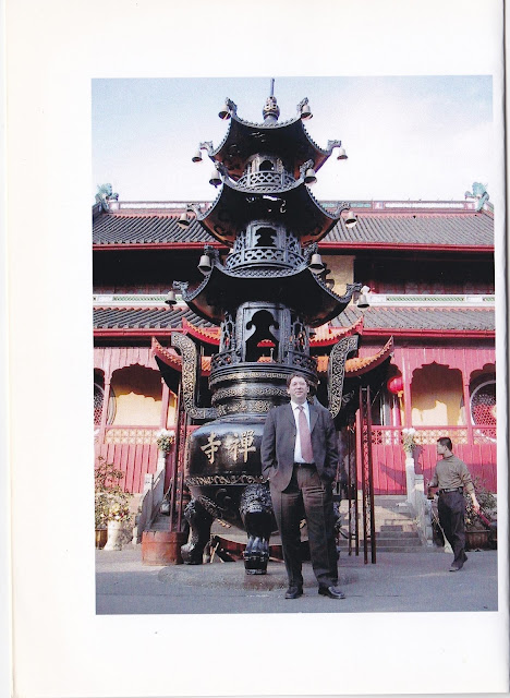 Et puis il y eut cet escapade dans un coin reculé pour visiter un très vieux temple à 200 ou 300 km de Nanjing. Mon fournisseur m’avait promis que le lieu valait le détour et que là-bas ne vivaient que des chinois d’avant. Nous étions à deux voitures et comme il se doit des grosses Mercedes noires. Tout juste sortis de réunion, nous étions encore en costards cravates. Arrivés sur les lieux, genre convoi officiel qui s’arrête, nous débarquions et j’étais le seul occidental. Alors que nous visitions les lieux, un premier gars vint me saluer, puis un deuxième, puis plusieurs, des vieilles paysannes aussi, en tout plus d’une cinquantaine de personne du coin. Je m’enquis auprès de mon gars des raisons de cet engouement pour mon humble personne ; une fois renseignement pris, il apparut que tous ces gens-là dont je parierai qu’aucun n’avait la télé tant ils étaient guenillards m’avaient pris pour celui qui est en Chine (comme au Japon) une véritable icône avec qui seul Mao peut rivaliser : Alain Delon. Et c’est ainsi que je me retrouvais à signer des autographes, à faire des bises, des courbettes : J’étais Alain Delon, il me fallait assurer. Ceci dit, la photo ci-dessus de cette journée prouve sans aucun doute que ces chinois là devaient être soit mirauds, soit, je ne l’ai jamais su, payés par mon fournisseur pour que je puisse être un instant Alain Delon.