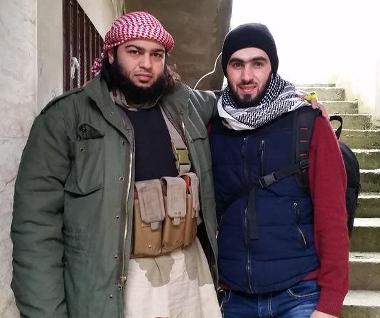 Al-Muhaysini, un clerc saoudien qui vient d’être désigné comme cible, est le principal idéologue de Nusra en Syrie. Certains le considèrent comme le nouveau Oussama Ben Laden. On le voit sur l’image, à gauche, bras dessus bras dessous avec le chef d’al-Qaïda en Syrie, le propagandiste et « journaliste » Hadi Abdullah.