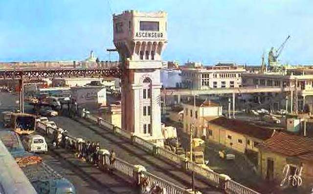 Du côté de la mer, vous voyez la Gare d’Alger , peut-être avec les beaux wagons inox du train de Constantine ou d’Oran, les taxis qui vont et qui viennent, les voyageurs qui partent ou qui arrivent ; pour aller là-bas en bas à la gare, si vous êtes en voiture vous descendez par la rampe Magenta, si vous êtes à pied vous allez un peu plus loin jusqu’au Bastion Central, et vous prenez l’ascenseur si elle marche, ou bien les escaliers si y marche pas. Sur le trottoir de gauche de la rampe sous le boulevard, tous les commerçants en gros d’Alger sont là, en cas que vous avez besoin de quelque chose avant de prendre le train ; les magasins, certains valent vraiment le coup, sous les voûtes très hautes fermées par des portes métalliques entre vert et noir, avec la marchandise qu’elle déborde sur le trottoir