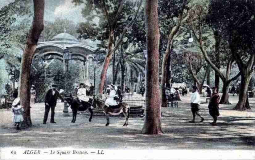 Pour remonter sur le boulevard, ou bien vous prenez la rampe en face, Chasseloup-Laubat, qu’elle vous mène presque direct à la Place du Cheval, ou bien mieux les escaliers vers le Square Bresson, en passant entre les chaises des clients des gargotes qui sont tout autour, comme ça vous pouvez faire votre menu en même temps : casse-croûte merguez, casse-croûte frite, casse-croûte omelette, casse-croûte cacher, gazouz et café ; et là, en haut de l’escalier le Square Bresson, c’est là que j’habitais avant de me marier !