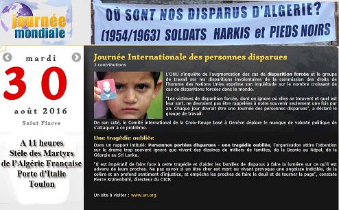 Nous ne pouvons, nous Français d’Algérie, nous Harkis, nous, anciens combattants, qui avons tant laissé derrière nous, notre vie, nos cimetières, nos amis, nos souvenirs, oublier aussi, ceux qui ont été enlevés à leurs familles, grâce aux accords assassins de cessez-le-feu pour politiciens crédules (ou pas…).