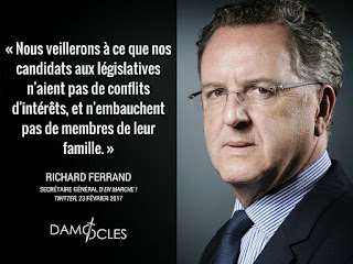 passons toujours sur le fait qu’une fois élu député, Ferrand continuera de toucher chaque mois du pognon des dites Mutuelles en sa qualité de chargé de mission ce qui ne le gênera pas le moins du monde pour défendre très activement une loi (adoptée malgré l’opposition de la droite) favorable... aux mutuelles,