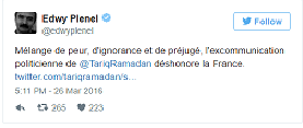 Elle a été, de plus, diffusée largement sur les réseaux sociaux sur le compte Twitter officiel de la chaîne @LCP, sous forme de teaser de l’émission, à 8h52 le même samedi 17 décembre, soit trois heures avant sa diffusion, dans la formulation suivante, accompagnée d’un extrait vidéo : « - @FredericEncel : “@edwyplenel, Alain Badiou et @PascalBoniface sont des ennemis de la nation” #ELL ».