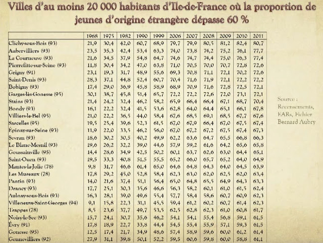 Et bien oui, et sans parler d’apartheid comme l’hystérique de Matignon, ils ont été bien utilisés. Avec ces 100 milliards, on a réussi, si j’en crois le tableau ci-dessus, à fabriquer de toutes pièces de parfaits ghettos, des citadelles devenues imprenables dans lesquelles vit et se reproduit une population d’origine étrangère, majoritairement musulmane, avec son histoire, sa culture, ses mœurs, ses lois et sa propre façon de voir l’avenir...