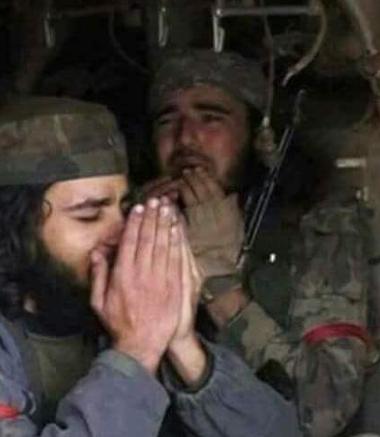 Al-Muhaysini, un clerc saoudien qui vient d’être désigné comme cible, est le principal idéologue de Nusra en Syrie. Certains le considèrent comme le nouveau Oussama Ben Laden. On le voit sur l’image, à gauche, bras dessus bras dessous avec le chef d’al-Qaïda en Syrie, le propagandiste et « journaliste » Hadi Abdullah.