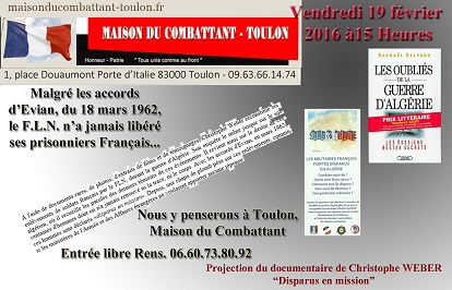 Nous vous convions à la projection du reportage « Disparus en mission », traitant du sujet des soldats disparus, qui aura lieu le :