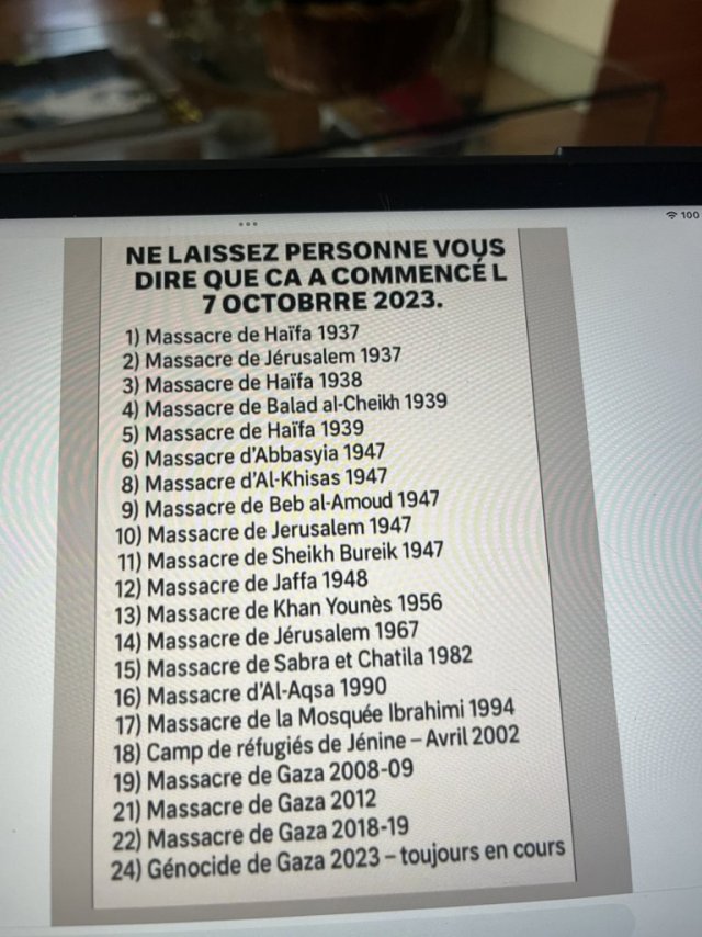 Procédant de la sorte, ils ont pensé que cela rachèterait moralement leur faute, nous chantant la main sur le cœur ’’plus jamais ça’’, mais la faisant dès lors porter par les Palestiniens qui n’ont pourtant rien eu à voir avec le génocide des juifs organisé sur le sol européen. La suite des évènements plus désastreux les uns que les autres pour les Palestiniens, découle de ce point de départ initial. Génocide que certains Israéliens n’ont jamais cessé d’utiliser en rappelant régulièrement ce que des leurs avaient subi lors de cette tragédie.