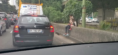 Au bout de l’autoroute A1, après le tunnel, en un des points routiers les plus fréquentés de France, la circulation se sépare en trois : de chaque côté un accès aux périphériques Est ou Ouest et au centre une entrée directe dans Paris, la porte de la Chapelle avec ce p’tain de carrefour que l’on peut mettre plus de vingt minutes à traverser. Il y a un mois, côté gauche, le camp de Roms avait été rasé. Quelques uns traînaient bien encore dans le coin (photo ci-dessus que j’avais prise) pour vous extorquer une pièce en échange du lavage de votre pare-brise, mais, bon, le camp n’était plus là. Et quasiment plus de gamins d’à peine 5 ans entrain de se faire saloper les bronches par les milliers de voitures.